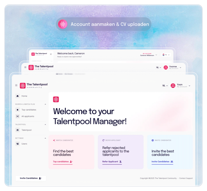 Kies het abonnement dat past bij jouw wervingsbehoefte. Of je nu alleen talent wilt doorverwijzen of actief wilt matchen: The Talentpool Community biedt drie abonnementen die meegroeien met jouw organisatie.